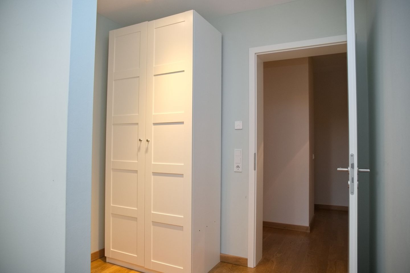 Die Wohnung empfängt Sie mit einem offen gestalteten Wohnbereich, in dem Echtholzparkett, eine geschmackvolle Einrichtung und eine große Fensterfront harmonisch zusammenkommen. Von hier aus genießen Sie 100 % Seeblick — ob beim Frühstück auf dem Balkon oder beim entspannten Abend auf der Couch: das Meer ist immer präsent. Die hochwertige, offene Einbauküche (Induktionskochfeld, Backofen, Geschirrspüler, Kaffeemaschine u. v. m.) macht gemeinsame Kochabende zum Genuss.