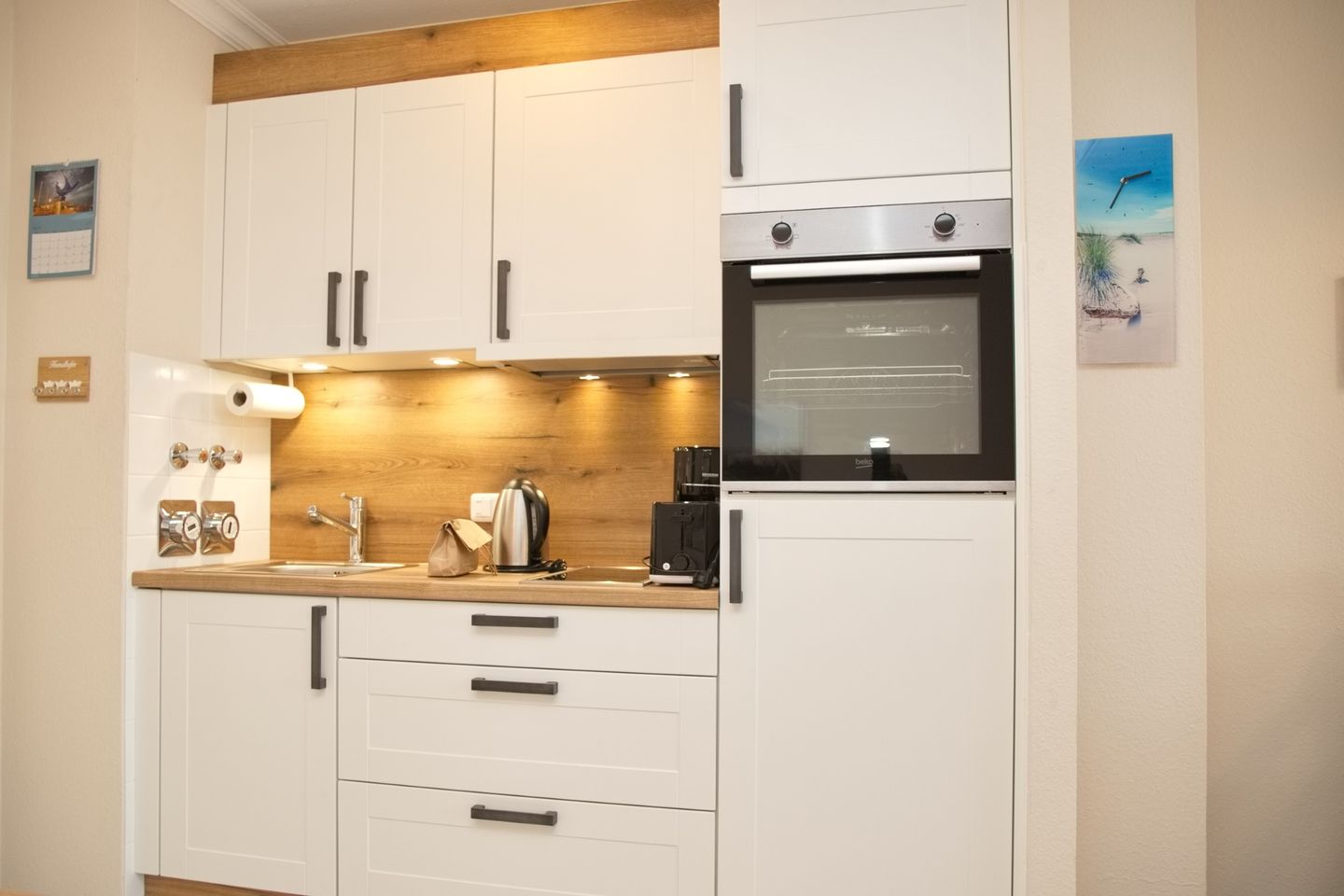 Die Villa am Meer App. 65 erstreckt sich über 43 m² im 3. Stock eines modernen Gebäudes, das mit einem Aufzug erreichbar ist. Die geschmackvoll gestaltete Wohnung ist sowohl für Paare als auch für Familien geeignet und bietet komfortabel Platz für bis zu vier Personen. Der helle Wohnbereich ist offen gestaltet und umfasst eine gemütliche Sofaecke, einen Essbereich mit einem Esstisch sowie eine moderne, voll ausgestattete Küchenzeile. Hier finden Sie alles, was Sie für die Zubereitung köstlicher Mahlzeiten benötigen, darunter einen Ceran-Herd, Backofen auf Augenhöhe, Kühlschrank mit Gefrierfach, Kaffeemaschine, Toaster und Wasserkocher.