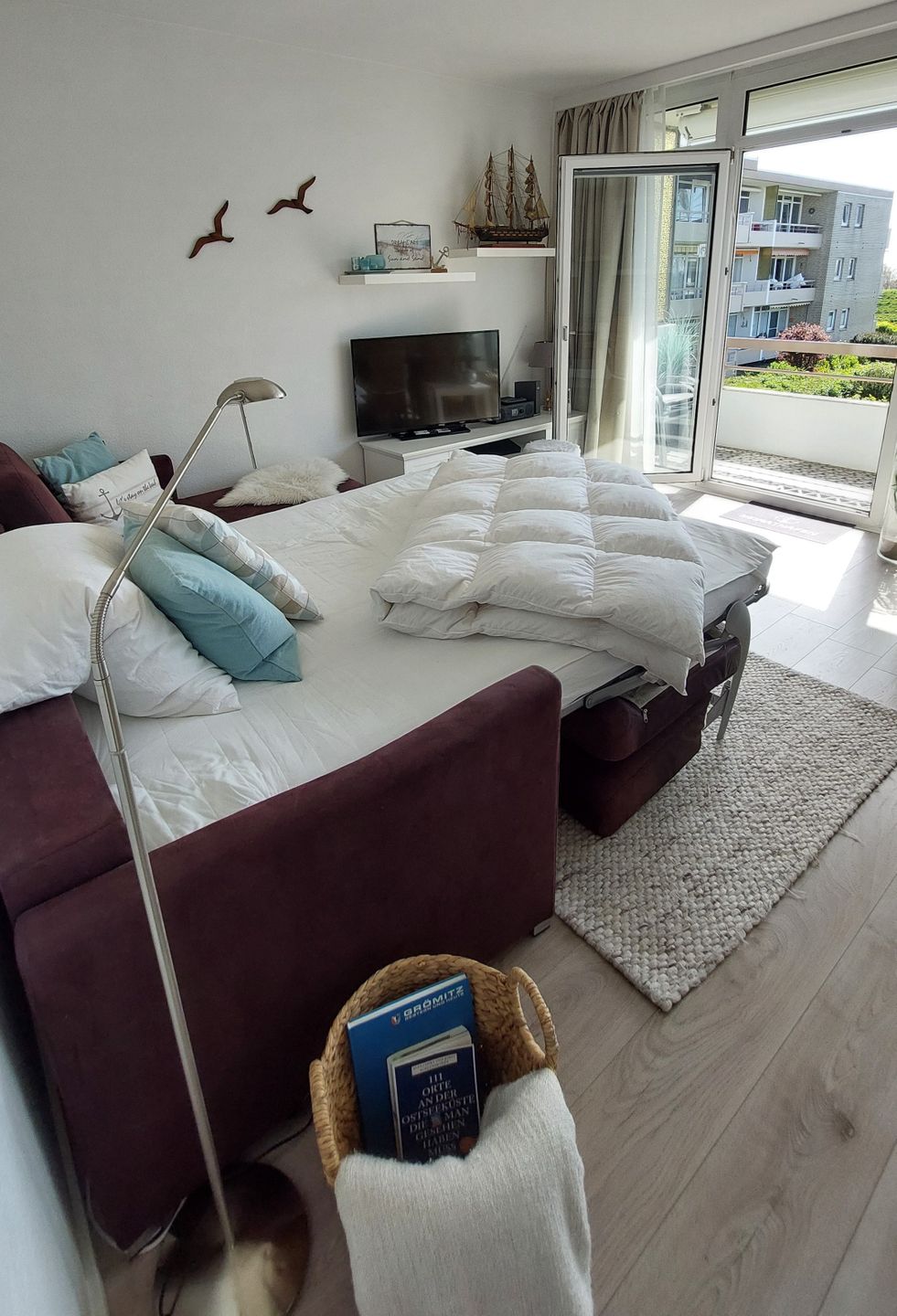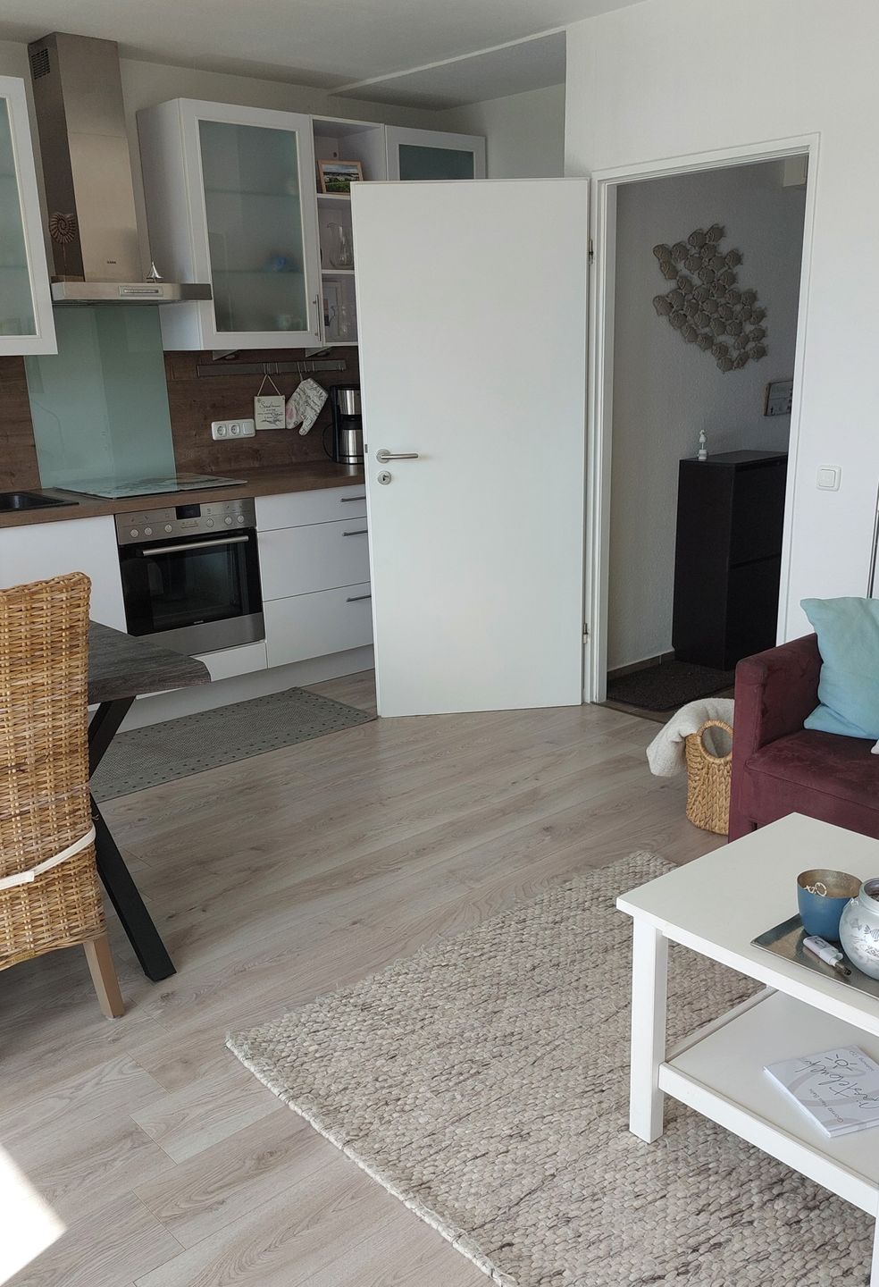 Toll eingerichtete Wohnung, super Lage, der Hundestrand gleich gegenüber, der Bäcker und die Promenade. Auch vom Balkon schöne Aussicht, besonders für ein Hund, der Hasen mag