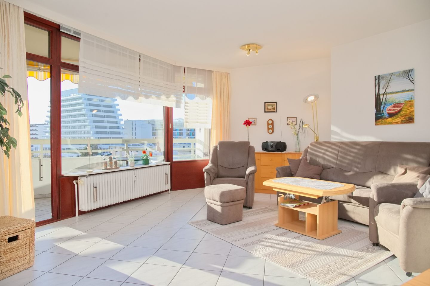 Diese gemütliche 3 Zimmer Ferienwohnung bietet Ihnen auf ca. 55m² Platz für 4 Personen. Der möblierte Balkon liegt in Westlage und hat einen seitlichen Blick auf die Ostsee. Die Ferienwohnung liegt im 5. Obergeschoss der Anlage "Grömitz- Center" und ist leicht per Fahrstuhl zu erreichen.